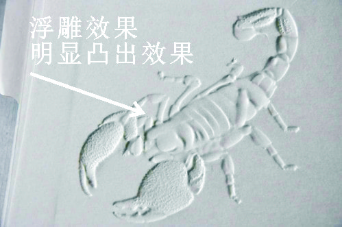 擊凸是通過模具的形狀,經過擊壓,使紙張局部變形產生的效果,在畫冊印刷中經常被用到